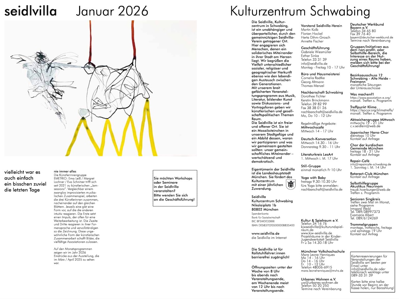Die Ausstellung "nie immer alles" ist beendet. Der - von Margret Lochner - liebevoll gestaltete, umfangreiche Katalog EMETRIO ist weiterhin zu haben, ebenso das schöne Postkartenset mit 10 ausgewählten EMETRIO Motiven in kleiner Auflage (Katalog 20,- Euro, Set 15,-Euro)